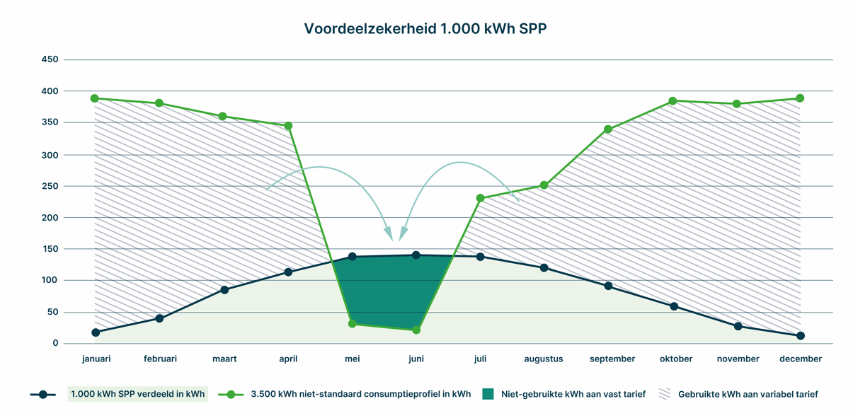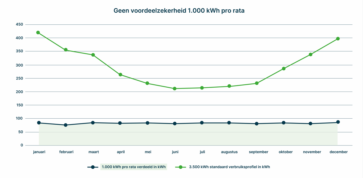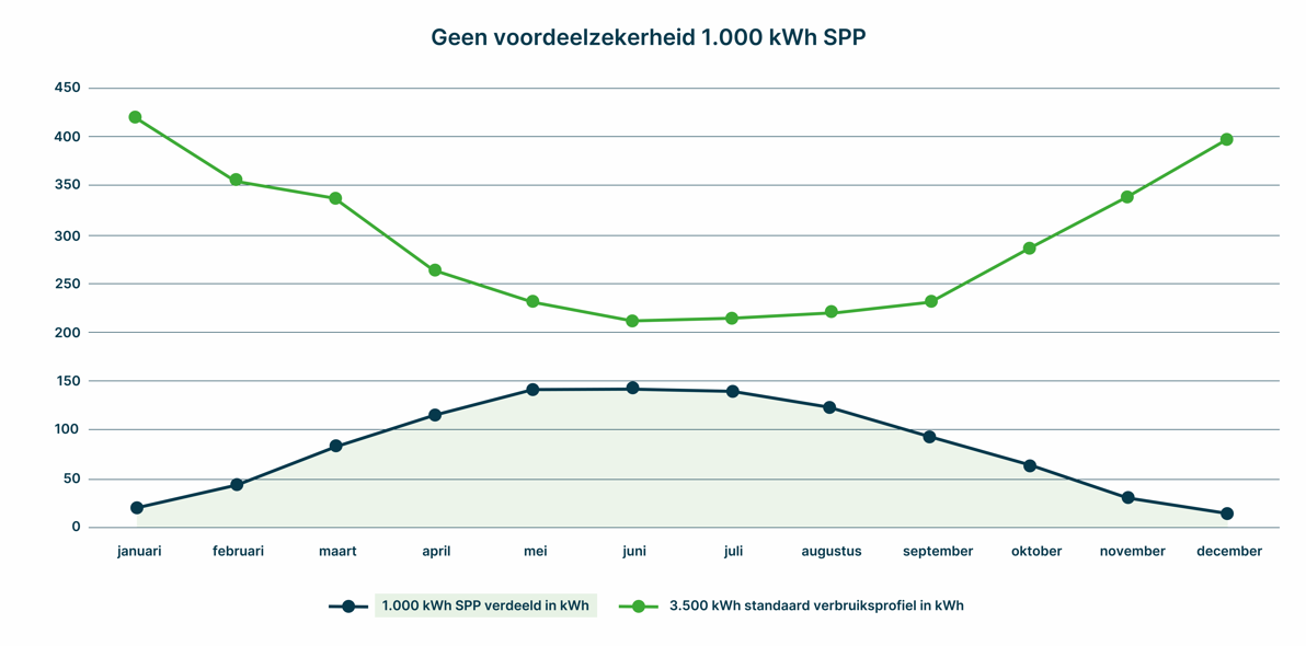 Concreet betekent dat dat je in de zonnige zomermaanden een groter deel van de 1.000 kWh toegewezen krijgt, en in de donkere wintermaanden een kleiner deel.